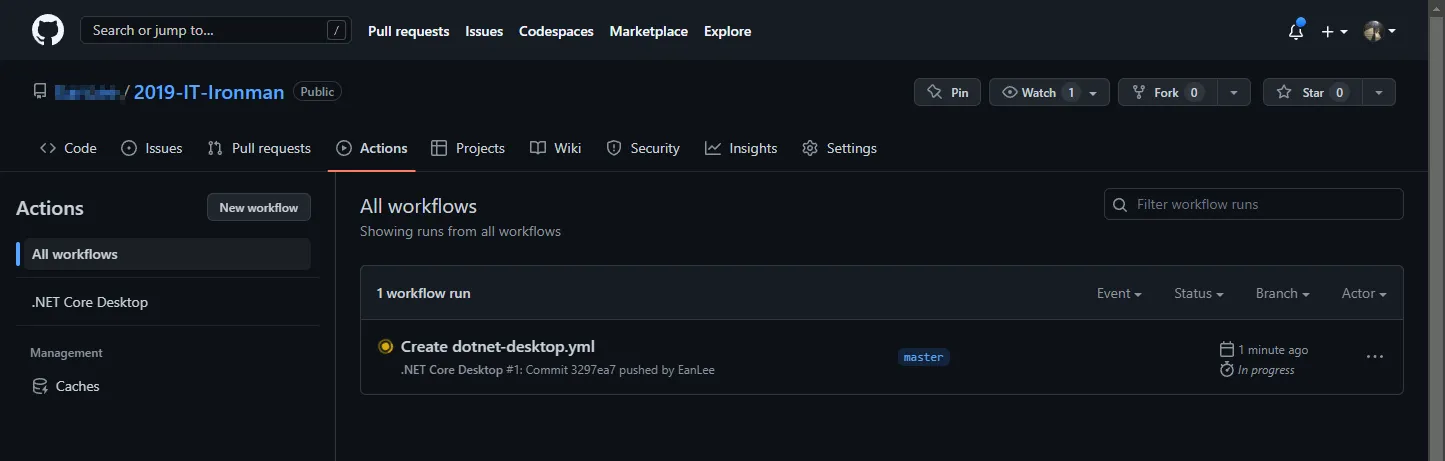 當完成設定後,再進入 GitHub Actions 後,就可以查看建置的動作了。